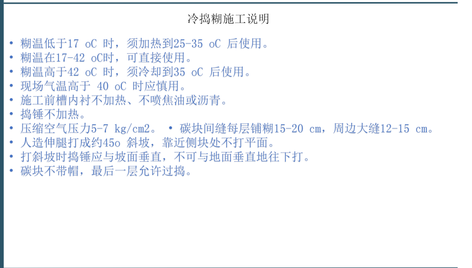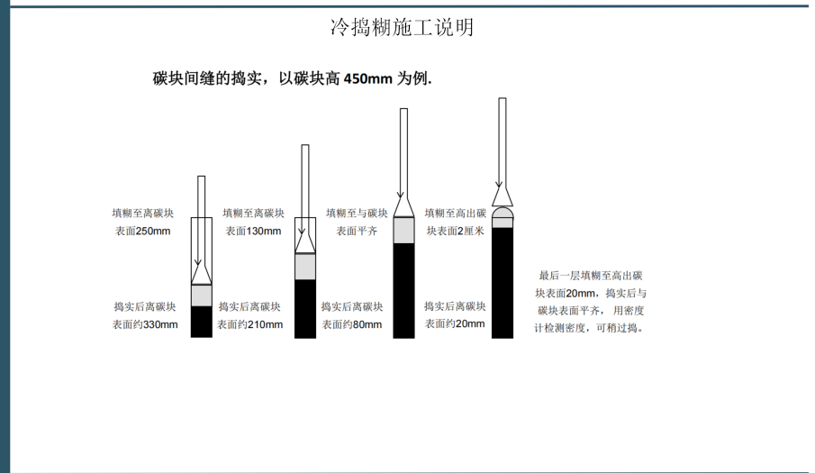 ??蟃型冷搗糊可以在17-42 °C的常溫范圍內(nèi)施工,施工時(shí)沒有瀝青煙 害,改善了施工人員的作業(yè)環(huán)境;埃肯冷搗糊按國際標(biāo)準(zhǔn)設(shè)計(jì),抗熱震性好、焙燒收縮率小于0.15%、搗實(shí)性好、不分層。??厦赓M(fèi)提供密度計(jì),用于在施工現(xiàn)場測定糊的搗實(shí)密度。